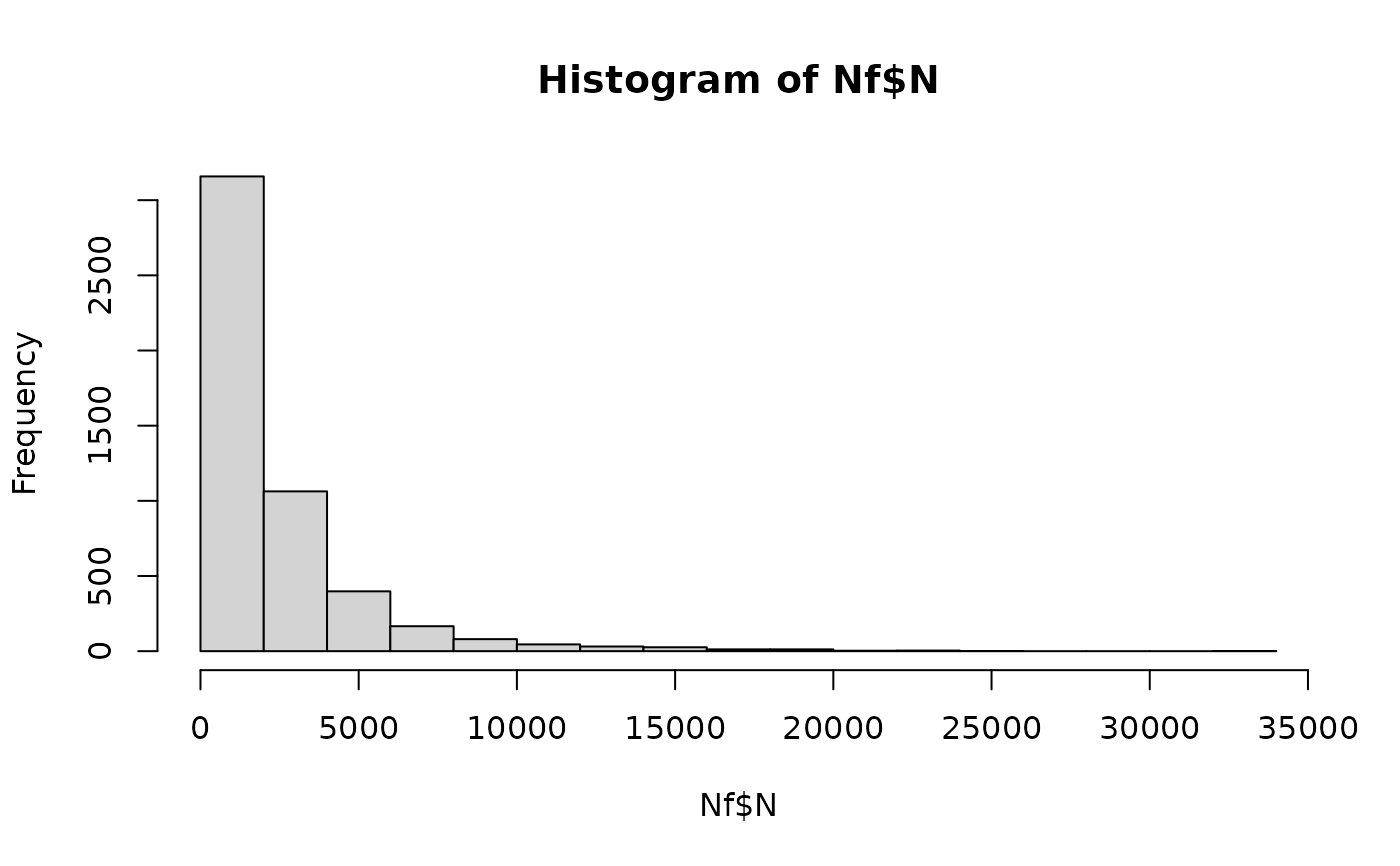 hist(Nf$N) # histogram of microbial cells in contaminated servings