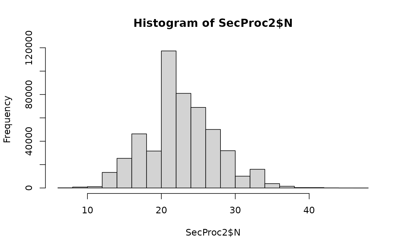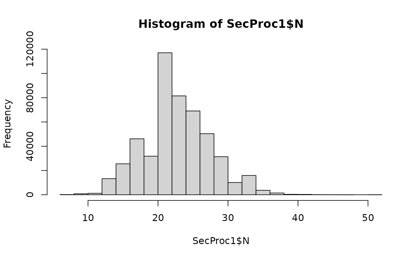 N = matrix(rpois(nLots * sizeLot, 23), nLots, sizeLot),